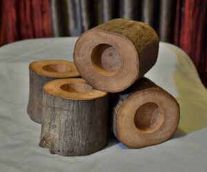 This awesome tree-branch candle holder would be a perfect base for the little mushroom beeswax candle.